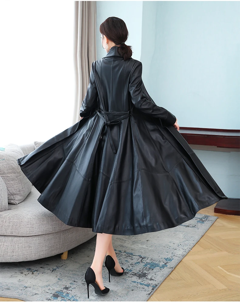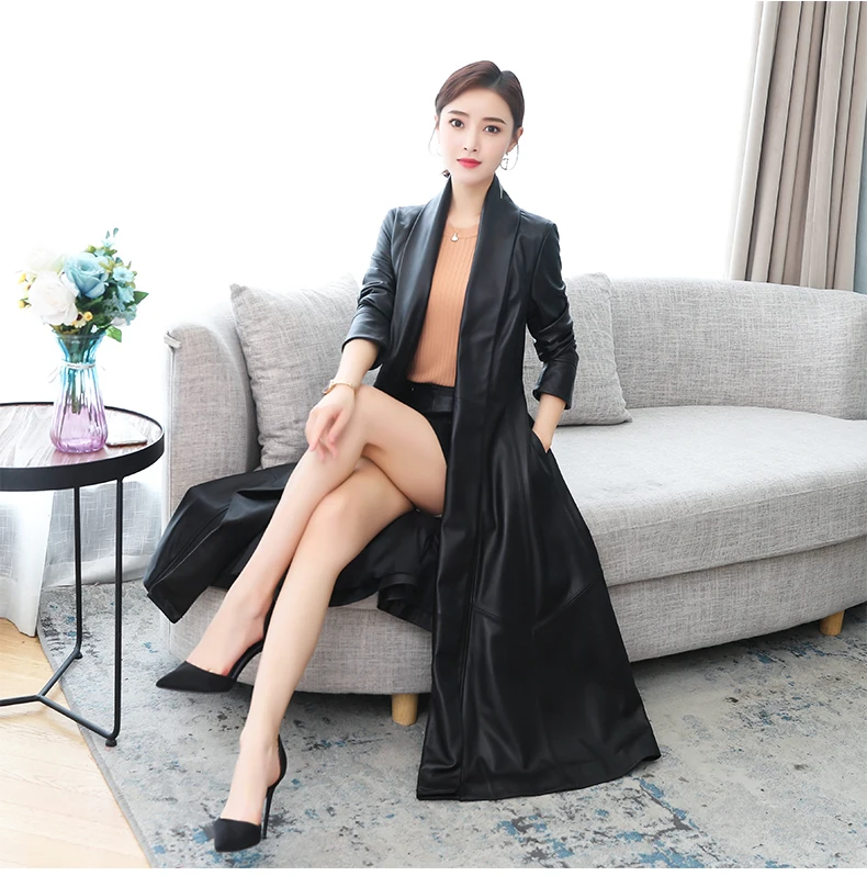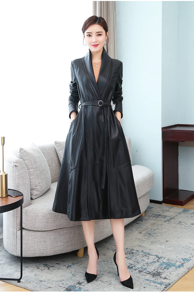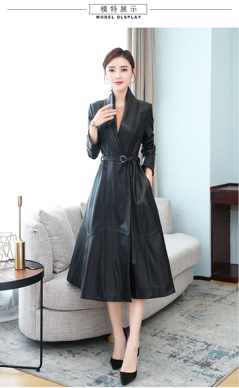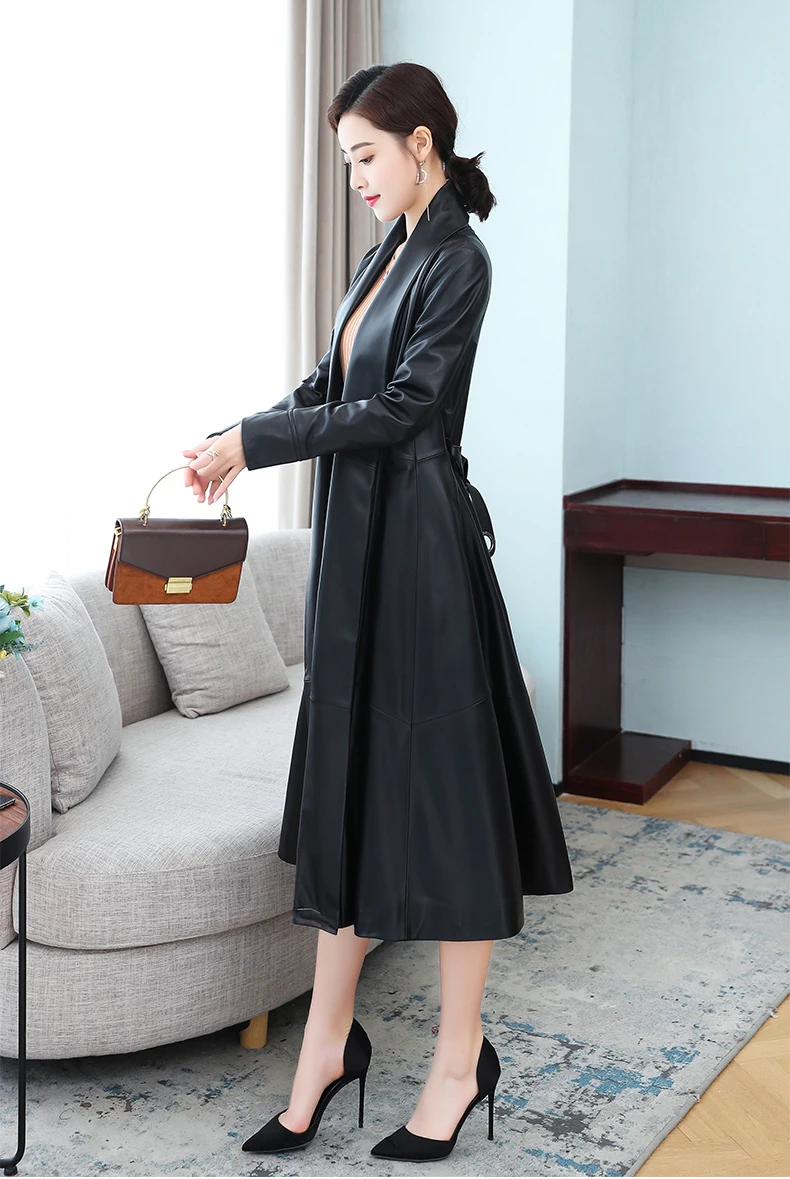 Nerazzurri Autumn Designer Long women Soft Pu leather coats long sleeve belt Black leather trench coat women Korean fashion 2021