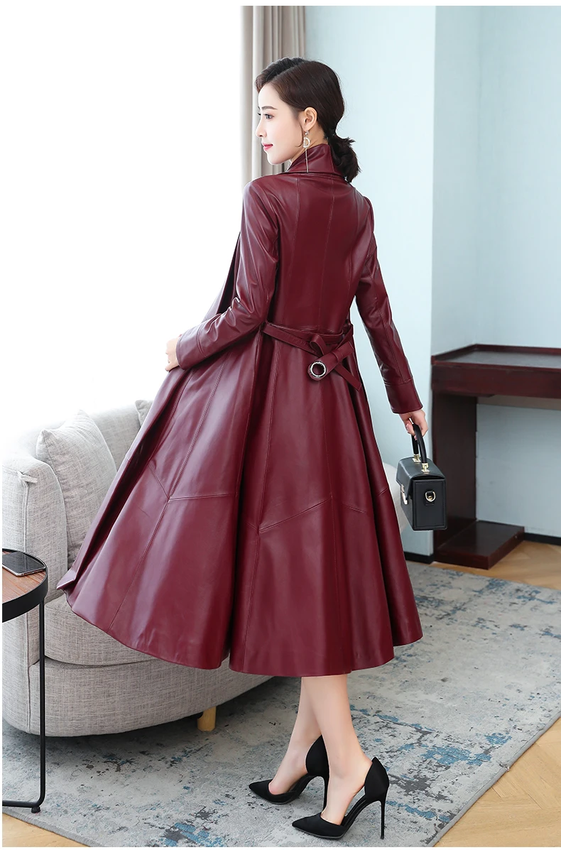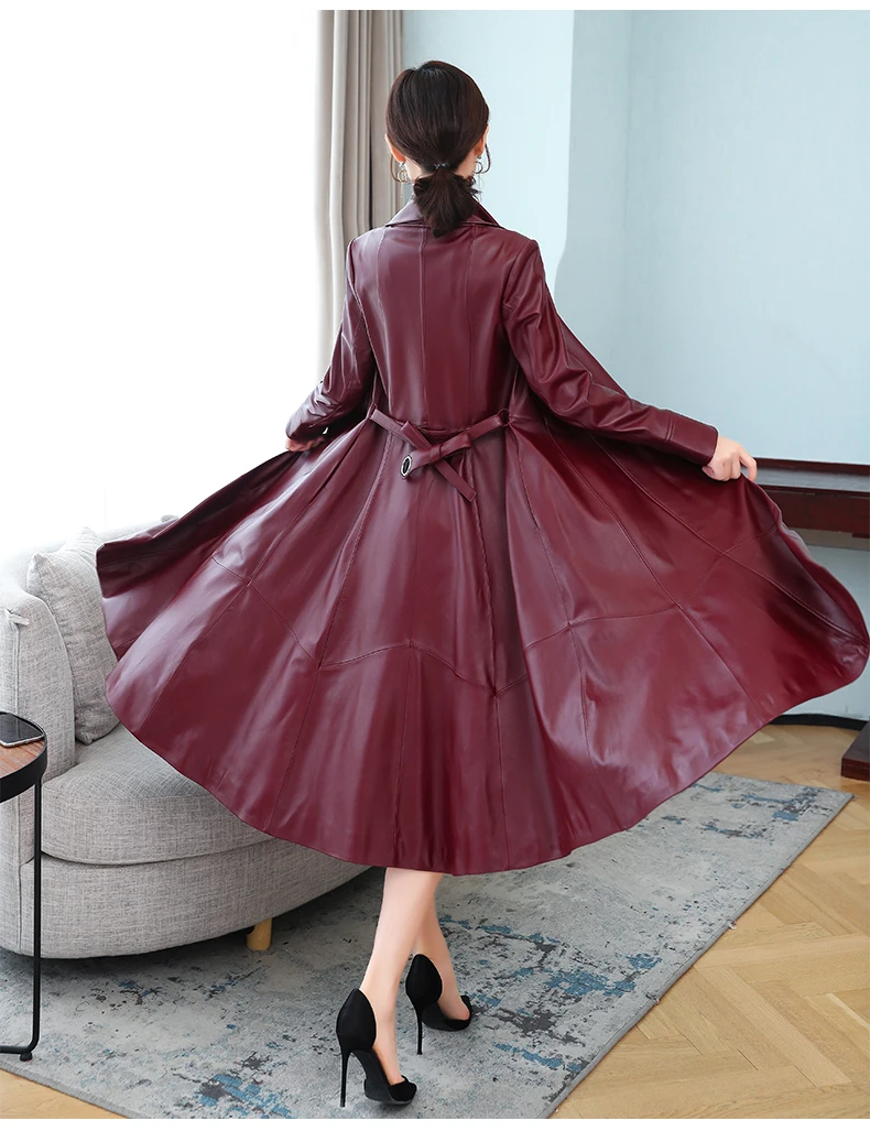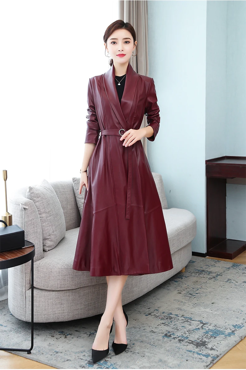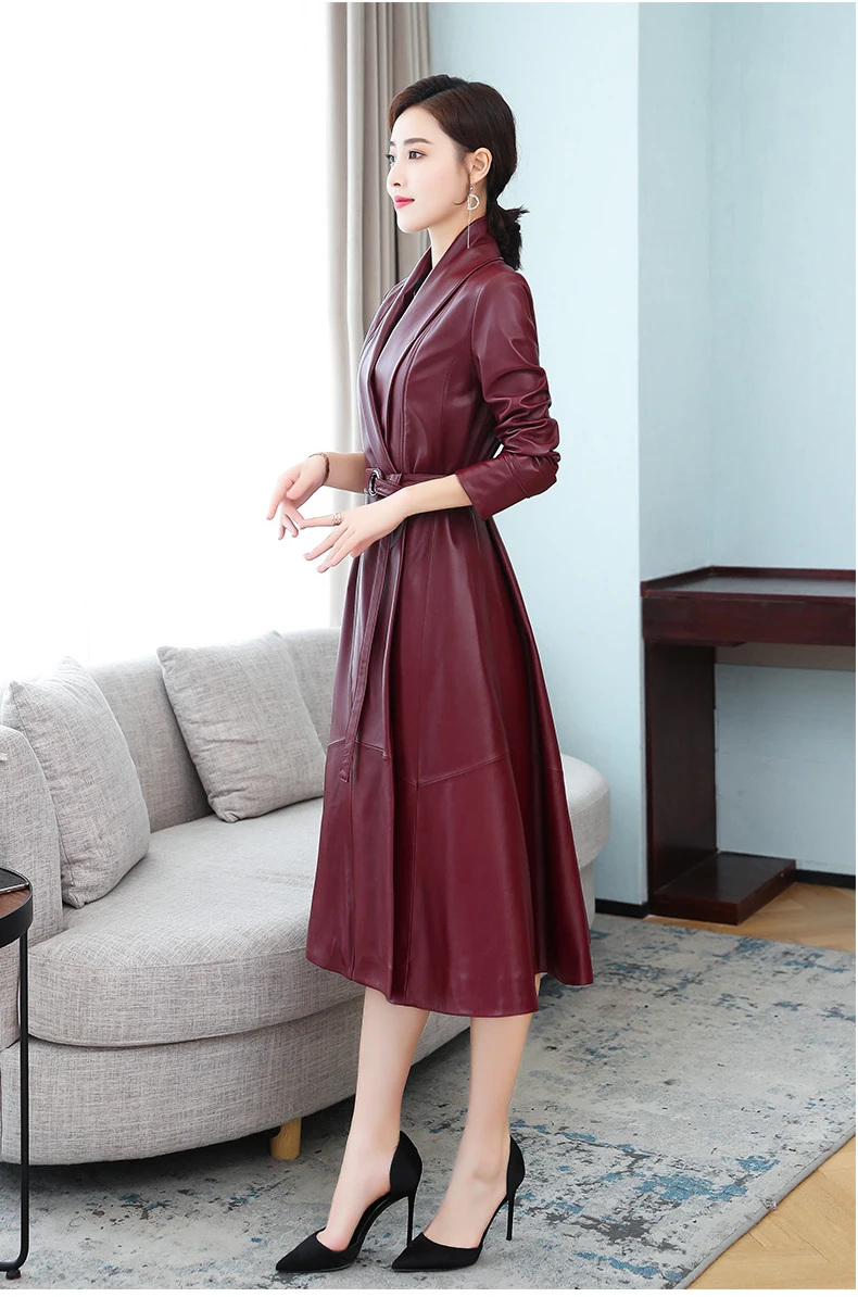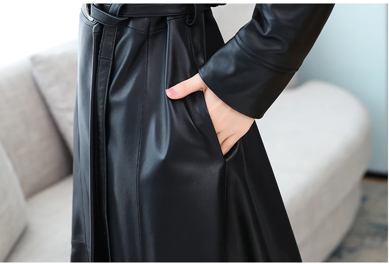 Nerazzurri Autumn Designer Long women Soft Pu leather coats long sleeve belt Black leather trench coat women Korean fashion 2021
